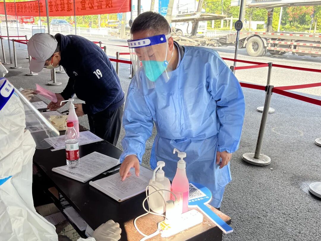 自今年3月按照街道党工委安排执行S9新湾高速卡口疫情防控任务以来,他无惧风雨,先后42天坚守在城市“外防输入”的东大门,查验卡口车辆26000余辆,并协助点长做好各项协调管理工作。他是高速卡口防控工作的“多面手”,从医疗、后勤物资保障,到环境消杀、医废处置,事无巨细处置妥善;他是高速卡口的“先锋兵”,主动承担夜班值守,熟练掌握预警拦截、信息查验、核酸检测、闭环管理、核查复盘全流程业务,快速处置突发情况,坚决杜绝任何风险隐患;他是高速卡口服务周到的“暖心人”,一遍遍讲解防疫政策,一次次做好情绪疏导,尽己所能为司乘人员提供帮助。