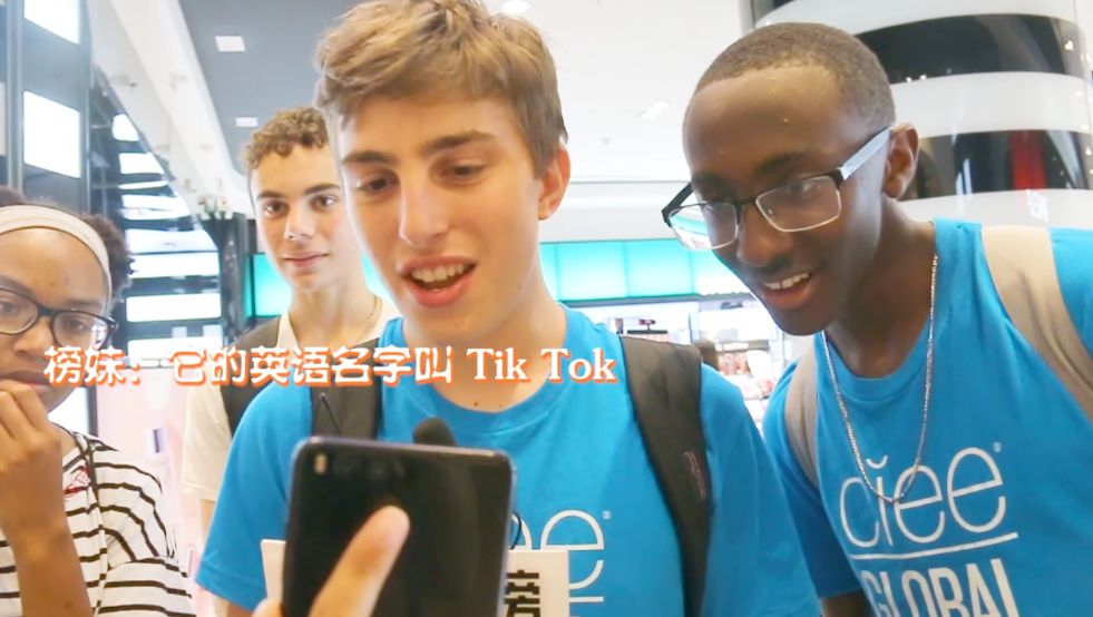 我们还很巧地遇上了一群到中国参加活动的国际友人(小哥哥真的帅!),可惜小哥哥并不玩抖音,但妹子们知道抖音(Tik Tok)。妹子告诉我们,她是在Instagram上看到抖音的视频的,觉得唱歌跳舞的视频很可爱![]()