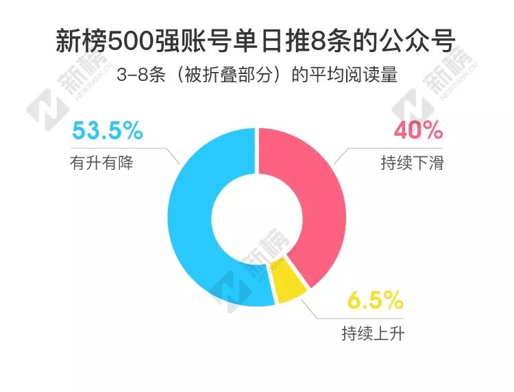 既然新榜500强账号中单日推8条的大号,改版后3-8条(被折叠部分)阅读量整体下滑,是不是意味着整个行业阅读数都下滑了呢?