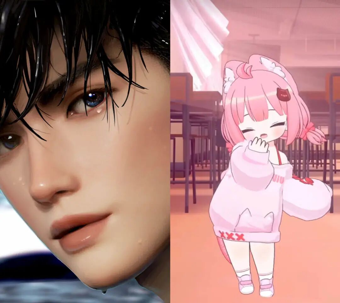 如果说柳夜熙像明星,那狐璃璃更像是秀场主播,如果说希加加是板正的企业员工,那狐璃璃便是活泼的二次元萌妹。事实上,中之人、超写实、元宇宙、二次元、数字人……在一系列复杂概念的轰炸下,我们似乎很难给出一个准确的虚拟人定义。为了回答这个问题,我们不妨先从不同角度对目前市面上的虚拟人做一些分类说明。按虚拟人的交互方式来分,虚拟人可以分为非实时虚拟人和实时虚拟人。在许安一运营公司吉光喵创始人范世育看来,孙悟空、蜘蛛侠等虚拟人物都可以算是广义上的虚拟人。这类虚拟人主要通过文字、图片、视频等内容形式与用户进行交互,因为没办法与用户实时互动,更多是在一个固定世界观中,所以算是非实时虚拟人。实时虚拟人,则是指虚拟人可以借助AI、中之人等驱动方式,通过直播等内容形式与用户进行实时互动。因为可以与用户进行实时对话,甚至情感交互,所以生命感是实时虚拟人的一个重要特征。最近在抖音热度比较高的虚拟主播,左为许安一,右为居居。图源:抖音LA.WK李未可科技合伙人李恬认为,技术进步带来的知识图谱、语音包、AI大脑的进步,让虚拟人能够进行更多拟人化交互,这是虚拟人区别于传统虚拟人物的重要标志。目前,在大众的理解中,虚拟人更多是指实时虚拟人。从这个角度讲,包括柳夜熙、AYAYI等虽然号称是虚拟人,但因为尚未进行直播等实时交互,所以给到用户的观感与萧炎、韩立等3D国漫人物并无区别。左为虚拟人柳夜熙,右为3D国漫《斗破苍穹》角色萧炎。图源:抖音当然,只要借助虚拟人技术让他们动起来,不论是孙悟空还是柳夜熙都可以成为大众认知中能对话、有情感的虚拟人。如何让虚拟人动起来?目前业内主要有两种方式:中之人驱动、AI驱动。A-SOUL是典型的中之人驱动型虚拟人,包括珈乐等虚拟偶像的动作、声音、才艺甚至灵魂都需要由背后的演员(业内将这类演员称之为“中之人”)来赋予。一个演员可以穿上恐龙套装在儿童剧扮演霸王龙,也可以穿上虚拟人套装在直播间扮演偶像,所以中之人驱动型虚拟人又被称为“皮套人”。洛天依、华智冰则是典型的AI驱动型虚拟人。作为虚拟歌姬,洛天依的歌曲表演不需要真人,而是由制作公司先对真人歌手/声优进行声音采样,建立声库,再依靠人声合成技术和应用程序对声音进行调教,最终完成创作。作为清华大学虚拟学生,华智冰则可以基于“悟道2.0”大模型等人工智能技术,完成作诗、绘画、编程等任务。按“真假”来分,虚拟人可以分为“虚拟人”和“数字人”。西谷直播电商集团研究院院长雄歌认为,虚拟人的严谨说法应该是“虚拟数字人”。(为了书写方便,下文仍采用“虚拟人”的说法)所谓“虚拟人”,指的是在现实世界中不存在的虚拟形象,包括柳夜熙、李未可等,在诞生之前并无现实原型。所谓“数字人”,指的是依托于真实世界的人所生成的数字分身,比如龚俊、易烊千玺等明星都有自己的数字分身。雄歌介绍,目前“数字人“主要有两种技术路线:光学扫描、CG扫描。光学扫描是利用摄像头对真人进行拍摄,或借助照片生成真人的数字分身。光学扫描的缺点是精细度较差,优点则是周期短、成本低。综合多位业内人士的说法,光学扫描数字人的成本在5万元以内,制作时间则可以控制在一天以内。CG建模则是利用CG建模技术制作真人的数字分身。CG建模数字人的优点是精细度更高,缺点则是周期长,成本高。综合多位业内人士的说法,CG建模数字人的制作周期通常需要1-2个月,市场报价在百万元左右。因为技术水平和产品要求不同,目前数字人的市场定价并不统一。比如创匠科技CEO刘卫透露,目前百度可以做到用1张照片15分钟制作一个光学扫描数字人,花脸AI CEO刘威则表示,自己公司可以把CG建模数字人的制作费用控制在50万元以内。优链时代则表示,最快可实现五分钟内创建数字分身,成本仅需100元。简单来说,虚拟人是一种虚拟身份,这个身份既可以由真人赋予,也可以凭空创造。按应用场景来分,虚拟人可以分为服务型虚拟人和演艺型虚拟人。服务型虚拟人更强调虚拟人的工具属性,定位更像是升级版智能客服。服务型虚拟人多依靠AI驱动,特点是智能要求低,多用于特定场景。万科的虚拟员工崔筱盼便是典型代表。演艺型虚拟人则更强调虚拟人的情感属性,与用户的情感交互是这类虚拟人的立身之本,所以演艺型虚拟人多依靠中之人驱动。许安一、金桔2049,定位更像是秀场主播,赚的是直播打赏的钱。柳夜熙、AYAYI,定位更像是明星网红,赚的是流量代言费。绊爱、A-SOUL,定位更像是偶像艺人,赚的是饭圈粉丝的钱。