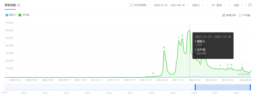 按制作的方式、周期、成本来分,虚拟人从低到高可以分为二次元虚拟人、高保真虚拟人、超写实虚拟人。这类虚拟人多为2D人物,因为对人物动作、表情的精细度要求相对不高,二次元虚拟人的最大特点是技术门槛低、制作成本不高。雄歌表示,如果是懂行的人,借助免费开源软件,一个人在家就可以独立制作二次元虚拟人并完成直播等操作。Vtuber四大天王,从左到右分别是电脑少女小白、辉夜月、绊爱、未来明、nekomasu(狐娘大叔)。图源“BB姬”业内通常将二次元虚拟人分为公司运营的企业势和个人运营的个人势。对于个人,通常只需要准备人物立绘、电脑摄像头等硬件设备,以及live2D等软件设备。以live2D模型为例,查看淘宝发现,简配版价格低至50元,高配版价格则在1-2万元之间。对于企业,因为精细度要求更高,需要高端动捕设备等,制作成本也相应提高。有媒体报道,绊爱使用的是国内公司诺亦腾的Perception Neuron惯性动捕方案,价格在四万元以上。陈凌宇估算,类似A-SOUL这类二次元虚拟人,单人平均制作成本在10万元左右。需要注意的是,10万元只包括二次元虚拟人的制作成本,不包含在运营、内容、中之人等方面的投入。这类虚拟人介于二次元虚拟人和超写实虚拟人之间,因为是3D人物,从人物建模、表情库建立到面部绑定都提出了更高的技术要求,但在精细度上仍与超写实虚拟人有一定差距。多豆乐创始人刘主力透露,方小锅从无到有历时3个月,前期投入费用在百万级别,主要包括制作、技术、运营三部分。金桔2049创作团队则表示,金桔2049的开发耗时3-6个月,费用同样在百万级别。陈凌宇估算,人物建模费用在7-10万元之间,动捕设备费用从几万元到几百万元不等,一个合格线以上的高保真虚拟人的平均制作成本在30-50万元左右。这类虚拟人算是目前虚拟人行业的顶配,人物精致、动作流畅,无限趋近于真人。当然,超写实虚拟人也是最贵的,技术要求高、制作周期长,投入成本大。创壹视频CEO梁子康曾向媒体透露:“2018、2019年,我们每一秒视频价格比1克黄金还贵,现在每一秒价格相当于2到3克的黄金制作水准和制作成本。“去年柳夜熙爆火时,梁子康曾向新榜编辑部表示,其团队人数在150人左右,其中超过一半均为后期技术人员,且多来自影视公司。刘卫则表示,其公司技术100%来自百度,目前一个超写实虚拟人的制作周期是4-6个月,费用也在百万级。“我们的超写实虚拟人跟柳夜熙是一个级别的,部分细节甚至会有超出”,刘卫说。值得注意的是,因为虚拟人市场仍处于早期阶段,缺乏透明的市场环境,加之各个公司的技术路线、供应链、费用计算方式以及虚拟人的精细度、完成度不同,虚拟人的价格浮动极大。“一方面,虚拟人的技术进展很快,可能同样一套方案,去年是一个价格,今年是一个价格;另一方面,做虚拟人本质上是在做内容,中间会有非常多版本的迭代,这个成本是很难计算的。如果只是抄现成模板,可能成本就几千块”,范世育解释。他认为,市场价50万元以内的二次元虚拟人、150万元以内的高保真虚拟人、200-300万元以内的超写实虚拟人,都可以算是合理报价。简单来说,虚拟人拥有多种内容形态,且每一种的实现方式和制作难度都有着巨大差别。类似的分法还有很多,比如国盛证券在相关研报中就将虚拟人分为服务型虚拟人(PGC+功能型)、虚拟偶像(PGC+IP价值)、数字化身(UGC+功能型)、创作载体(UGC+IP价值)四种。事实上,就像在iPhone这款杀手级产品统一共识之前,智能手机的概念复杂且凌乱一样,关于“虚拟人是什么”这个问题,目前并没有在从业者和用户中形成广泛共识。在虚拟人的iPhone出现之前,我们似乎很难给虚拟人下一个准确定义,但如果回到虚拟人的过去——虚拟人为什么会火,我们却可以找到看待虚拟人的一些角度。对比近两年“虚拟人”和“元宇宙”的百度搜索指数发现,两者的趋势变化基本相同。柳夜熙的爆火是一个标志性的时间节点。据观察,不少虚拟人公司的项目启动时间与柳夜熙的爆火时间相当吻合,都是在2021年年底。范世育坚定地认为,“元宇宙是下一代互联网,这个过程是不可逆的”,虚拟人则是目前元宇宙比较容易落地的基础设施之一。出于对元宇宙未来的看好,提前布局,积累虚拟人资产,是不少从业者的想法。(有关元宇宙是否是未来,新榜编辑部将在后续报道中与大家共同探讨。)“既然元宇宙是未来,那就要先下场,这样不论未来如何变化,我们都能第一时间反应过来”,范世育解释。就在柳夜熙爆火前10天,2021年10月20日,广电总局发布《广播电视和网络视听“十四五”科技发展规划》,提出“探索短视频主播、数字网红、直播带货等虚拟形象在节目互动环节中的应用”,首次明确鼓励和支持虚拟人的发展。标杆案例加上相关政策,点爆了国内相关从业者对虚拟人的热情。2. 对现实痛点的真实需求:主播恐惧症、流量饥渴症