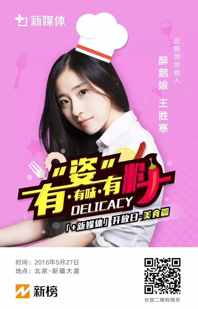 5月27日,新榜美食论坛与您相约北京新疆大厦,届时黄小厨、一条美食台、企鹅团、艾格吃饱了等众多大号以及多家平台头条号、优酷、天天快报等将一起为您分享美食内容创业的独家干货,更有美食账号Top100名单公布,报名请点击“阅读原文”或扫描上图二维码。