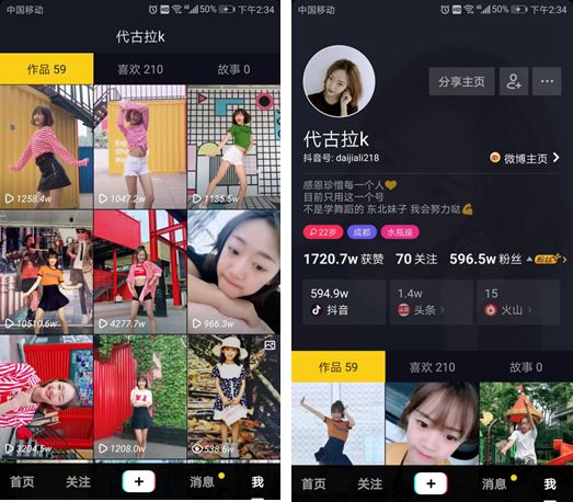 许多粉丝声称,看到小姐姐的笑容感觉自己恋爱了,每天必须刷10遍停不下来。代古拉K这只魔性视频获赞545万,转发高达50万次,舞蹈动态图成为宅男们争相下载的专属屏保壁纸。个人账号在10天内暴涨500万,成为继费启鸣之后又一枚凭借抖音走红的素人网红,代古拉K目前总粉丝已逾600万,在抖音舞蹈类女生达人中排名第二位,其爆发力预示了其冲刺千万粉丝大关的野心。