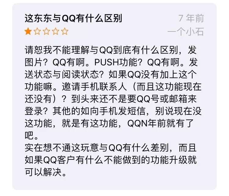所以,很多早期微信App评论的焦点集中在:用这个……还不如用QQ?