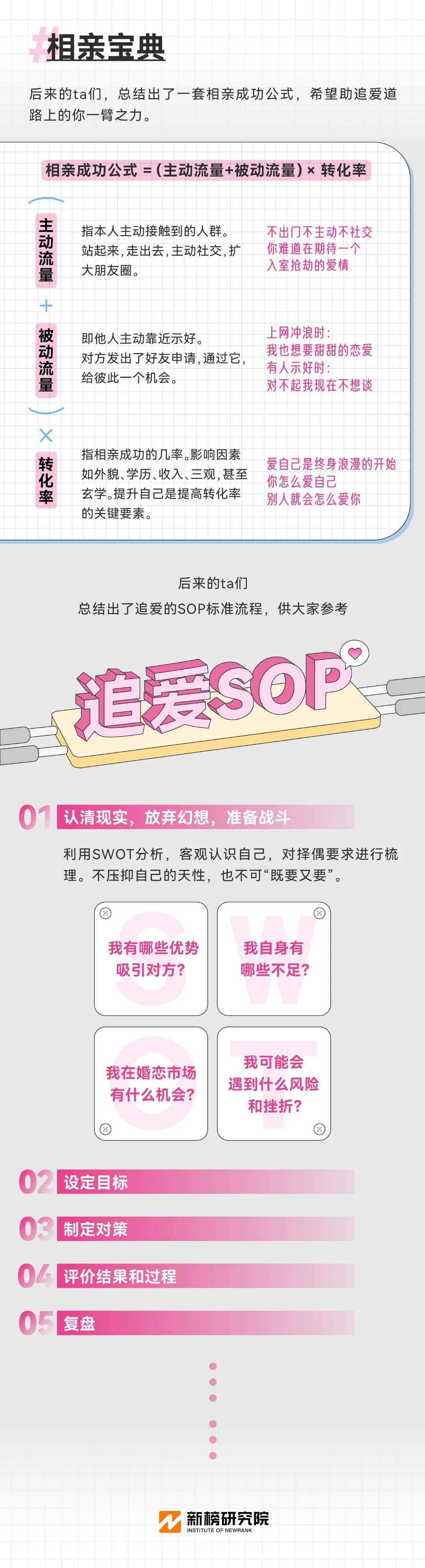 我们吸收了前人相亲经验与教训,总结出“相亲成功公式”;采访了朋友们追求另一半的心路历程,梳理成“追爱SOP”;也针对相亲可能出现的问题列出了一些温馨提示以供参考,只希望每个寻找爱情的人谨防受骗,少走弯路。“见山是山,见海是海,见花便是花。唯独遇见了你,云海开始翻涌,江潮开始澎湃。”期待双方可以满怀热烈与爱恋,跨越遥远山海和漫长时光,坚定地看向对方......仿佛生活的酸甜苦辣都要与ta分享、三餐四季都要与ta共度,这人间才算值得。勒•克莱齐奥写道,“我想,在这个世界上,虽然没有最美好的相遇,但却应该有为了相遇或者重逢,所做的最美好的努力”。我们相信每个人都会遇到命中注定,和ta去看这世界的波澜壮阔,和平淡无奇;“The