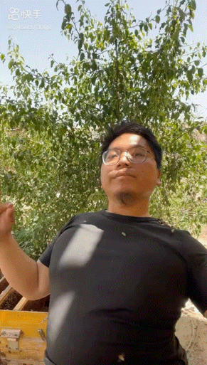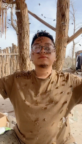 在全网参与的P图狂欢下,“疆域阿力木”的热度水涨船高,多次登上各个平台的热搜榜单。新榜数据显示,他在最近一周全网涨粉超过360万,其中在快手涨粉131万、抖音涨粉160万、B站涨粉70万。阿力木过往的经历被挖出,在“你这背景太假了”爆红之前,他已经是网络上小有名气的带货达人,主要卖新疆的蜂蜜与枸杞,也是上过央视的三农主播。为了推销蜂蜜,他深入蜂群,被蜜蜂蛰肿了脸,不可谓不“拼命”。这次爆红,让他一直带货的蜂蜜和枸杞很快销售一空,销量直接上涨了50%。前两天,我们找到了阿力木,和他聊了聊全网爆红的始末,以及努力带货的往事经历。用他的话来形容,就是“一件正常的事情被发酵成不正常的事情,不正常的事情发酵成出乎意料的事情,出乎意料的事情发酵成一发而不可收拾的事情”。引爆“你这背景太假了”一梗的那条视频,实际上是阿力木某次直播的画面。他居住在新疆,基本上每天都会直播介绍蜂蜜等特产。新疆日照时间长,夏天晚上10点左右才日落。每次在晚上直播时,都有不了解情况的观众问为什么天还亮着?你这背景是假的?他不得不一遍遍解释这里是新疆,问的人却越来越多,阿力木就在直播时下意识地往水里扔了个桶,试图去证明背景是真的。他把这个片段剪成了短视频,自己也不觉得很搞笑,没想到播放量挺高,很快涨到了800多万。后来的故事大家都知道了,玩梗的风潮就像脱缰的野马,谁也拉不住。阿力木看到的第一个玩梗的视频,是他被P到了岩浆里面,他觉得还挺有趣;第二个是他从飞机上“掉下去了”,那时候他觉得事情有点不简单;后来五花八门的二创全出来了,逐渐演变成鬼畜,跳舞的、被P进游戏里的、掉到油锅里的……一个卡点的动作能被重复播放十来遍,竟然毫无违和感。别看阿力木一身风吹日晒的黑皮肤,留着山羊胡,看似格外老成,他其实是个97年出生、今年25岁、同样喜欢玩梗的年轻人。在直播和视频里,他主动回应网友们“你这背景太假了”的调侃,喊话大家“随便剪,你有本事可以把我剪到那朵云上面,那座山上面,那个树上面,甚至把我剪到地里、河里流下来”,还邀请大家来做他的互联网“鬼畜舞伴”。![]()