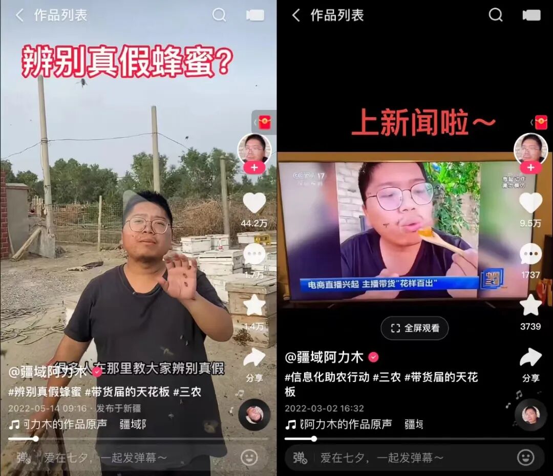 牛粪水的视频小火了一把,保守估计,全网播放量超过4000万次,也为阿力木的直播间引流了更多观众,直接促成了“你这背景太假了”一梗的形成。再之前,阿力木被记住的点,是一个为了卖新疆蜂蜜、没有任何防护地走进蜂群,乃至被蛰肿了脸的带货主播,其努力和勇猛程度,被许多人称为“带货天花板”。![]()
