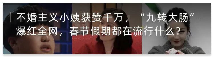 参考文章:《不婚主义小姨获赞千万,“九转大肠”爆红全网,春节假期都在流行什么?》