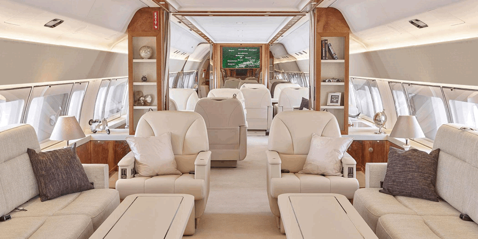 飞机上有带独立卫生间的卧室套房、办公室、会议室……堪比一架在空中移动别墅。