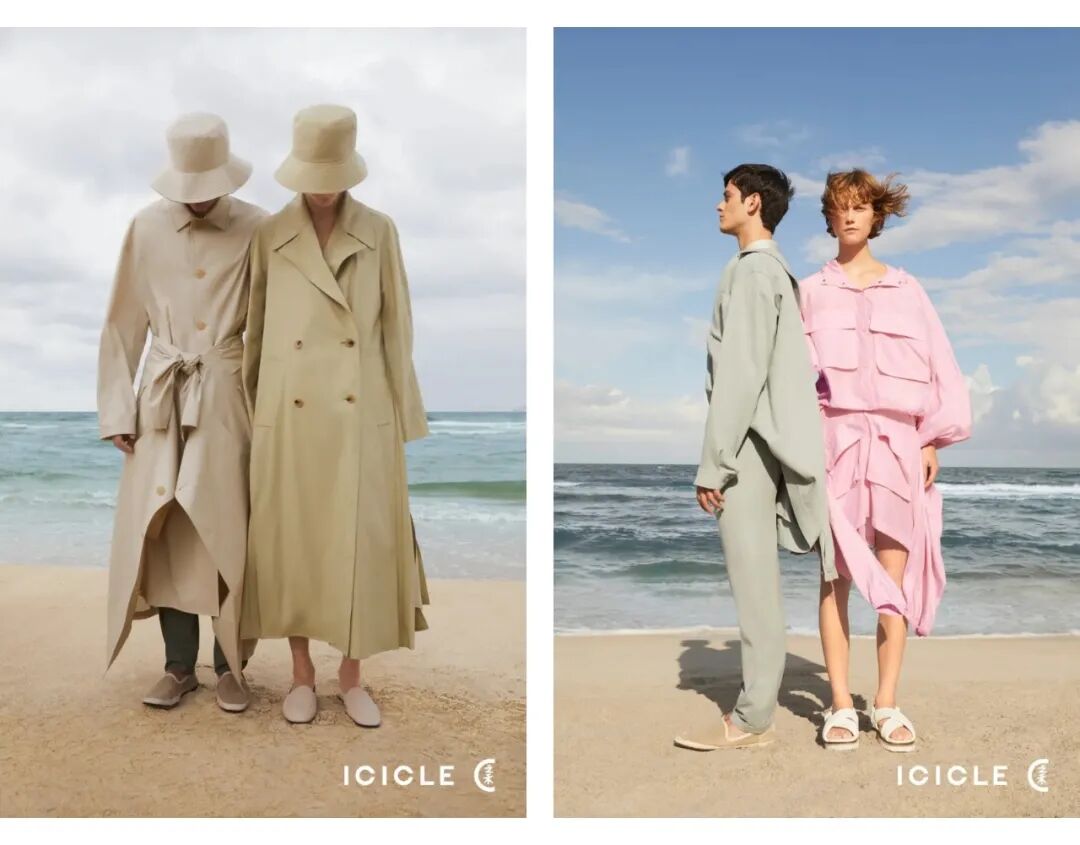 很多人把井柏然和白敬亭比作食草系帅哥,或者盐系男,其实从他们的穿衣风格还能透露出他们的水象特质,就像海洋、沙滩和阳光带给人的舒服感觉。这种感觉除了自身气质,通常都是由衣服的材质和设计展现出的。棉、麻能给人贴近自然、纯天然的感觉,皮革会让人觉得冷峻和不羁,厚重的材质让人看起来就感觉到温暖和亲和力,羽毛或者皮草会让人自然而然地联想到奢侈。所以如果想要为穿搭提升气质,可以先在选择面料和色彩上下功夫。比如井柏然上身的这件米色的针织帽衫,还有卧在礁石上穿的那套羊绒套衫与骆驼绒薄呢长裤,全都来自这种风格的翘楚——ICICLE之禾。ICICLE之禾一直主打天然的面料、高级的质感、还有亲肤的穿着体验,所以它一直受到很多明星们的青睐,也是杂志拍摄中的常客。熟悉ICICLE之禾的人都知道,这个牌子是从女装起家的,所以不只是井柏然,像秦海璐和唐艺昕都穿过他家衣服拍过封面。看出片就知道,这个牌子的设计和质感如静水流深,不喧嚣也不吵闹,但每一个经过打磨的优秀细节,都能够掷地有声。朱一龙拍T Magazine开年刊时也穿了ICICLE之禾的米色风衣,拍摄背景中也有海滩与海浪,不得不说,这个牌子一直与“水”有着说不清的缘分。在ICICLE之禾2022春夏系列的广告中,他们就以“水”为切入点,用“Be Like Water水象 ” 来命名这个系列。你可以把这个概念理解成大自然中水的各种状态,也可以延伸到中式传统文化中所说的“上善若水”。所以在塑造这个意境的时候,ICICLE之禾选择让模特成为戏水者,让轻盈的布料在空中跃动,它们捕捉了风的形状,也让“自由”和“生命力”的理念变得具象而生动。在诗意的视觉语言中,东方美学和中国元素并不浮于表面,它们更像是预设在细节中的伏线,让观者自行去品味。比如两两一对的模特呈现,有“好事成双”的寓意,背景中天色的变化似乎也预示着云开雨霁,会有幸运发生。在大片中出现的四种材质:精纺丝羊毛、真丝、环保牛仔和针织面料,也从侧面体现了ICICLE之禾一直所珍视的自然之美。众所周知服装制造业是可能产生大量污染的行业,ICICLE之禾一直坚持将可持续性有机地融入产品研发和制造过程中。无论在概念上还是具体迈出的步履上,都称得上是先驱。