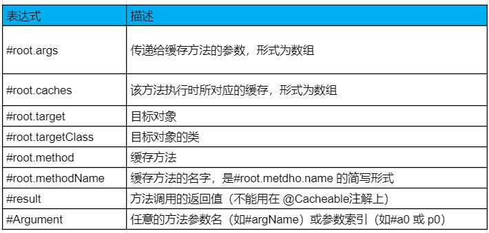 SpEL 表达式还有很多其它规则,如下所示: