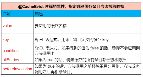 @CacheEvict 还有些属性可供使用,总结如下:
