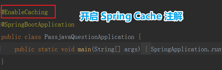 (1)启动类上添加 @EnableCaching注解。本文案例就是在 启动类 PassjavaQuestionApplication 添加 @EnableCaching注解。