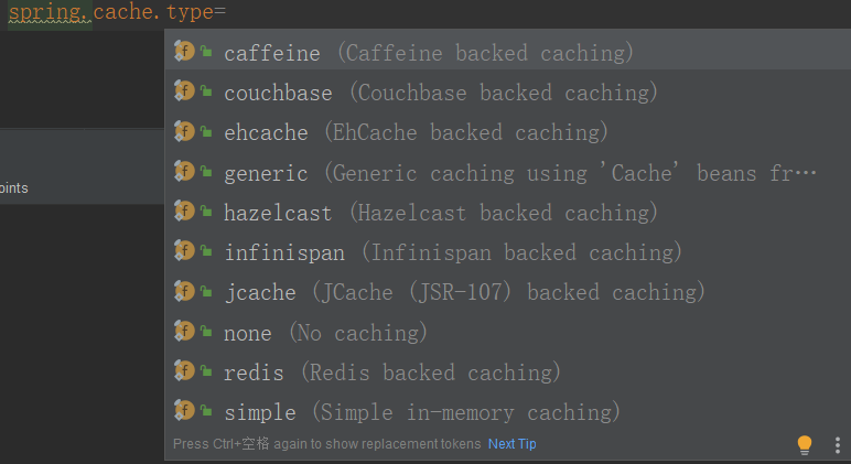 Spring Cache 支持很多缓存中间件作为框架中的缓存,总共有 9 种选择:
