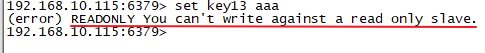 读写分离架构中,从节点是只读的,只能查询,所以 set 一个 key 会报错,验证通过。