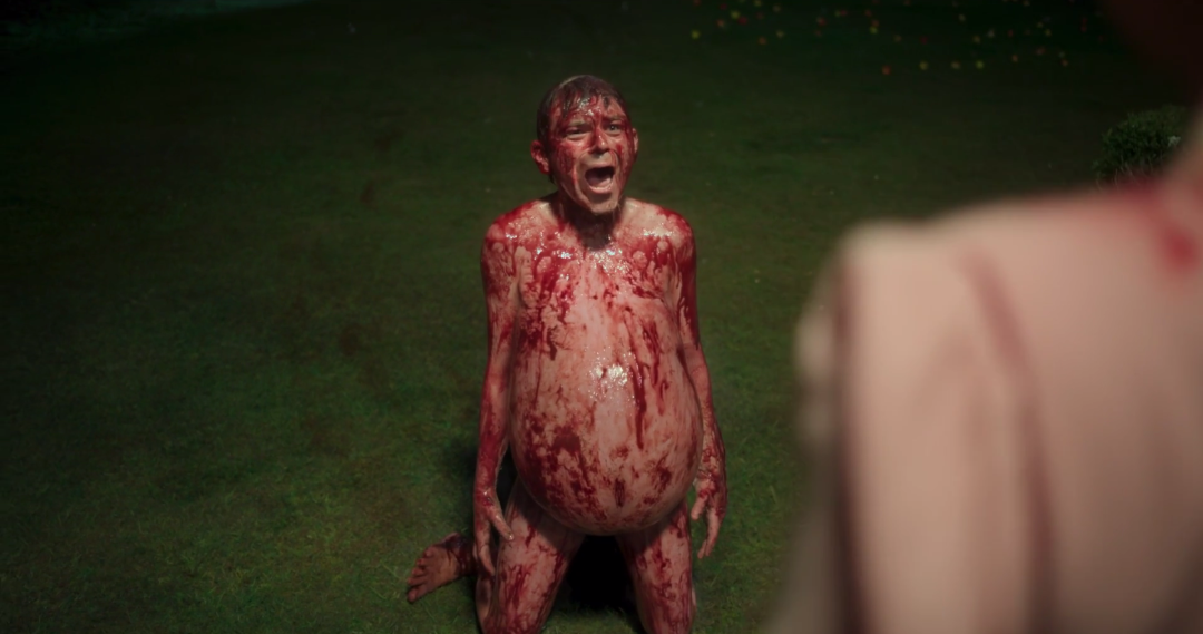 加兰似乎意有所指,借此设计与丈夫的形象分别展示出男权社会下男人的“一体四面”:对女性受害者的指责,暴力行为,言语羞辱与“煤气灯操纵”。随着一个满身伤痕、赤身裸体者的闯入,与其他男性怪异的行为举止,影片基调逐渐从缓慢的心理惊悚转向场面令人颤栗的恐怖之中。承载着暴力与毁灭的怪物成为加兰剧本里对男权的一个喻体,可他仅是描绘出一个轮廓,却难以深入任何议题,既缺乏广度,也未曾探索更深层次的人物心理。本算是新奇的设定,也随着加兰贫瘠的想象力变成了噱头。作为女主角的哈珀则更像一个沉默的观察者,与朋友、男人或其他社会关系都是表面而浅薄的,我们无从得知她更多的想法,意志和情感,只是与她看着加兰不厌其烦地展示各种身体奇观。