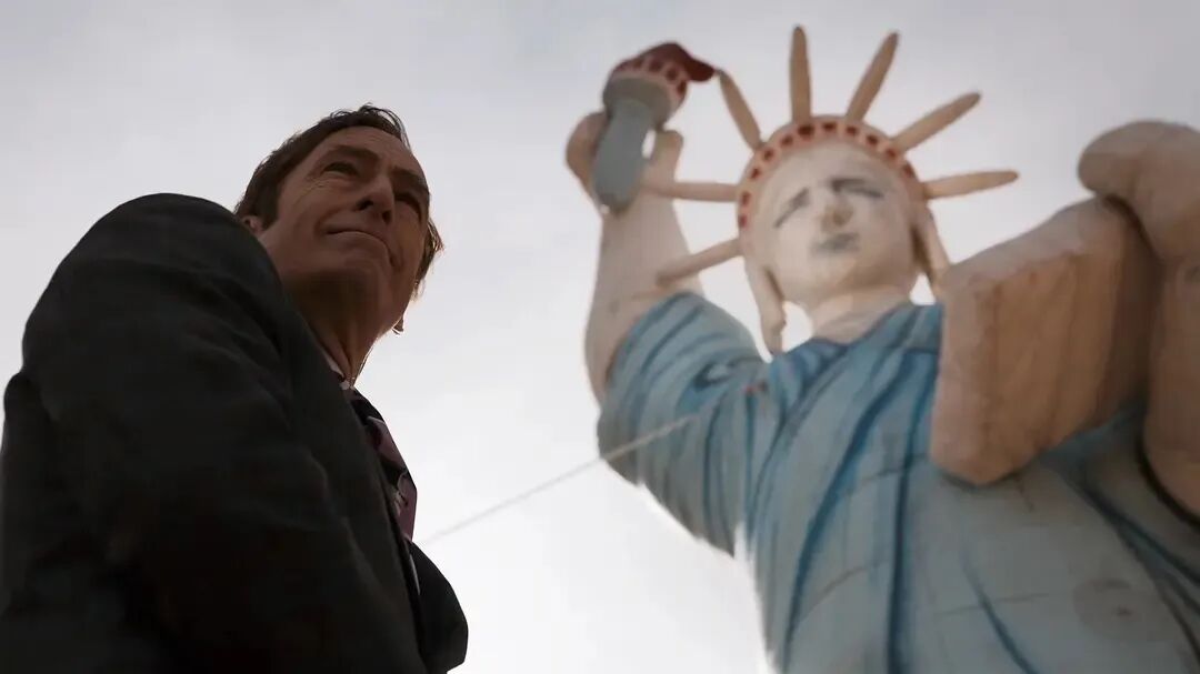 还记得系列之初吗?吉米的尊严显露出来,为了接单,谎称办公室在装修,顺理成章和客户约定在外面餐厅见面,纵使他用风趣幽默掩盖内里真实,那一句又一句不断重复的粉饰话术也会使他心底的倔强显露无疑。