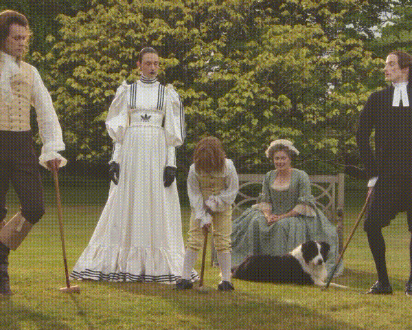 他在采访中说到:“户外拍摄的灵感来自《巴里·林登(Barry Lyndon)》,我们把带有阿迪达斯条纹的维多利亚风格的白色裙子自然地融入到一群穿着那个时代服装的人中——这是我最喜欢的一个设计。”而米开理说的这些正是《巴里.林登》之于《Exquisite》广告大片的意义,去复刻出服装所存在所呼应的年代,因为回到过去,倒流时间是一种情怀,是对一件服装的致敬。