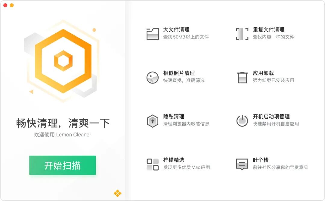Mac 系统一般用不到杀毒软件,也不会有弹窗的问题,至于垃圾清理、启动项管理、右键菜单管理等功能,可以用柠檬清理。