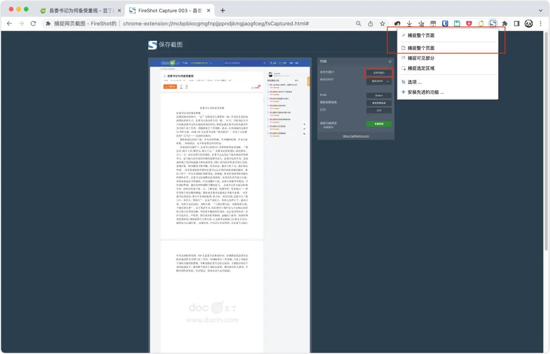 而如果不是 Canvas 图片模式,那我们可以通过扩展来获取全网页截图。