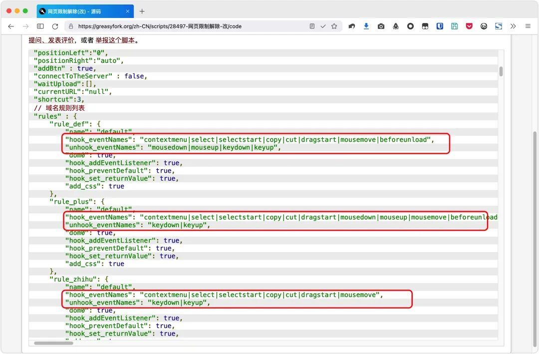 javascript:function t(e){e.stopPropagation(),e.stopImmediatePropagation&&e.stopImmediatePropagation()}document.querySelectorAll('*').forEach(e=>{'none'===window.getComputedStyle(e,null).getPropertyValue('user-select')&&e.style.setProperty('user-select','text','important')}),['copy','cut','contextmenu','selectstart','mousedown','mouseup','mousemove','keydown','keypress','keyup'].forEach(function(e){document.documentElement.addEventListener(e,t,{capture:!0})}),alert('已解除网页限制!')();