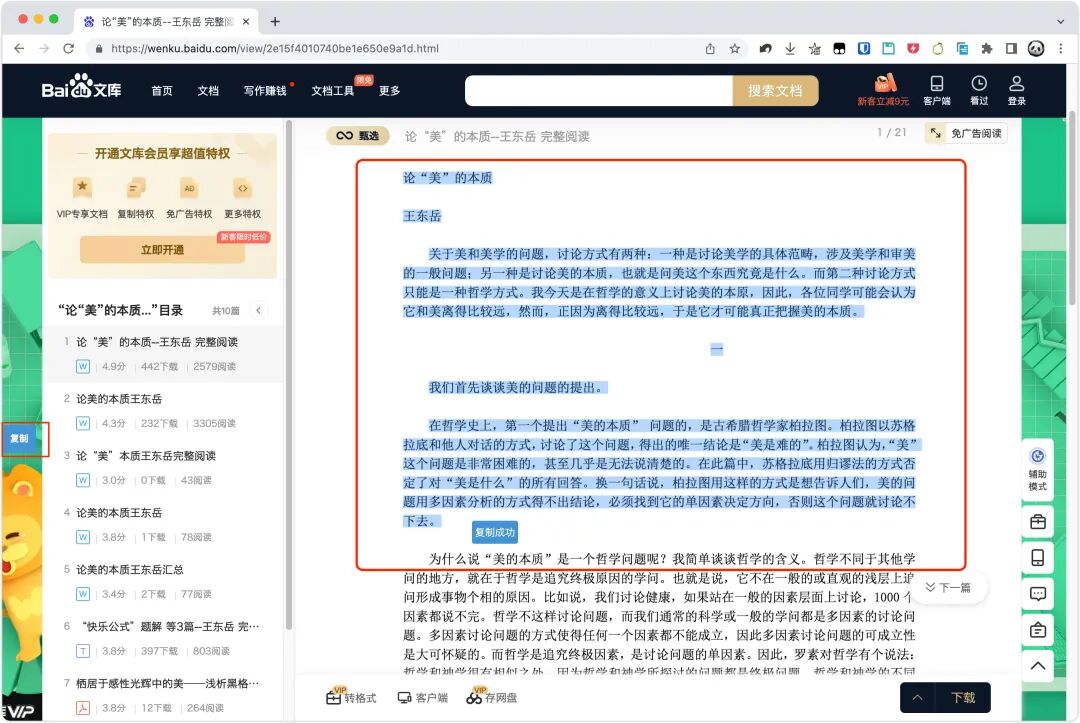 而且,扩展在应付“百度文库”这样的网站时,效果非常的好。