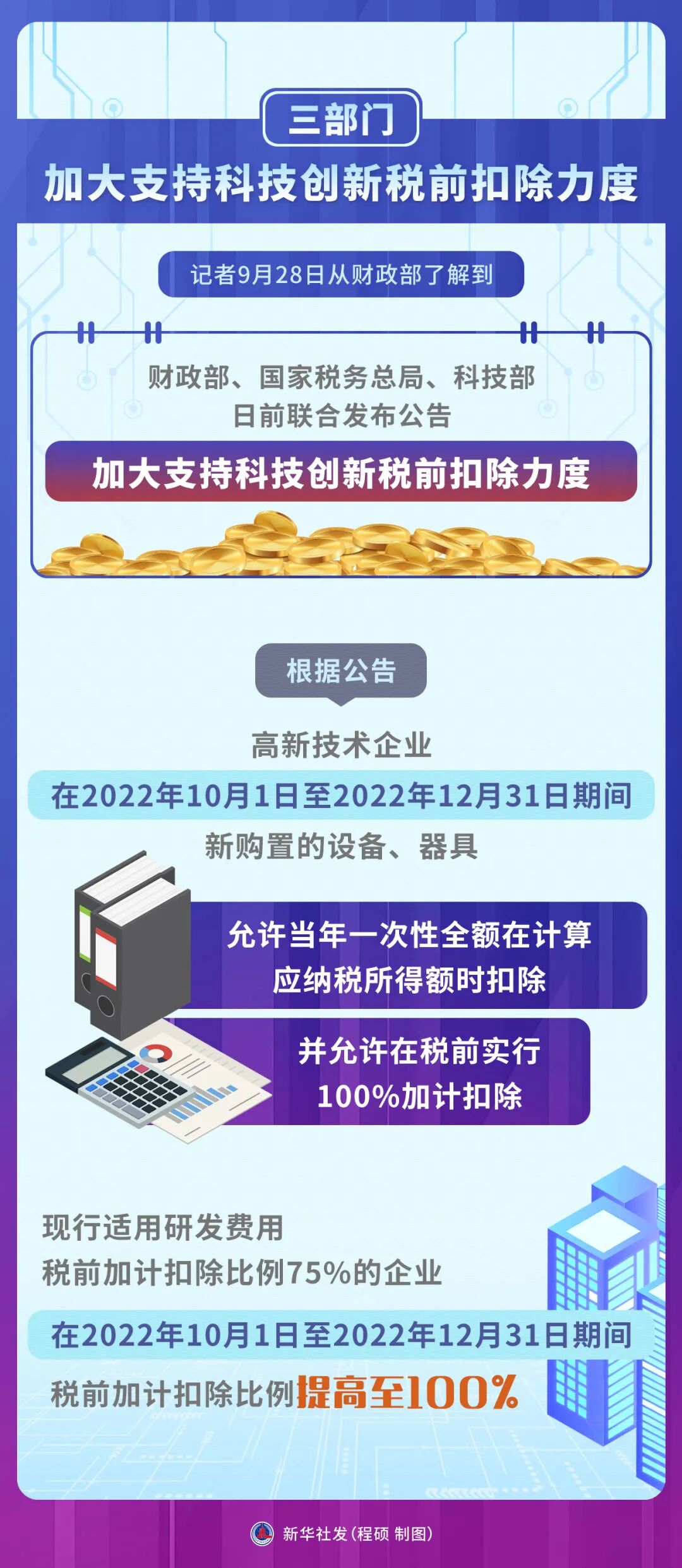财政部、国家税务总局、科技部日前联合发布公告,加大支持科技创新税前扣除力度。