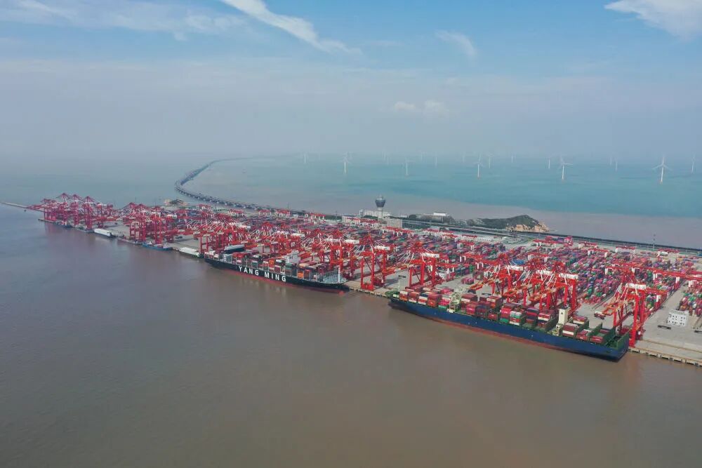 这是2022年9月23日拍摄的上海洋山港集装箱码头(无人机照片)。新华社记者 丁汀 摄