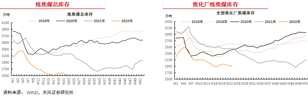 低库存的格局难以转变:由于我国主焦煤对外依存度较高,国际煤炭贸易的不稳定导致进口减量,从而加剧炼焦煤供需失衡,疫情期间都难以大幅累积的库存,后期赶工状况下更可能再创新低。
