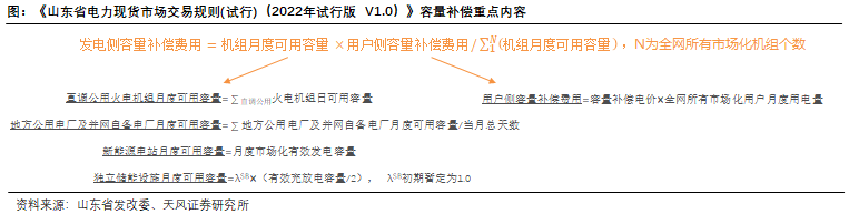 以山东为例,2022年3月,山东发改委发布《关于电力现货市场容量补偿电价有关事项的通知》,提出山东容量市场运行前,参与电力现货市场的发电机组容量补偿费用从用户侧收取,电价标准暂定为每千瓦时0.0991元(含税),收取标准与上一版容量补偿政策一致。