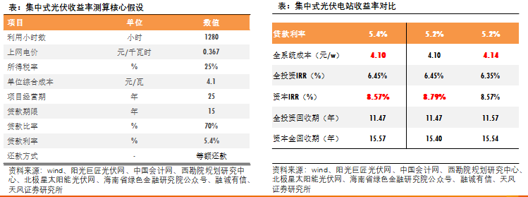 我们测算,贷款利率下行0.2pct时,集中式光伏电站: