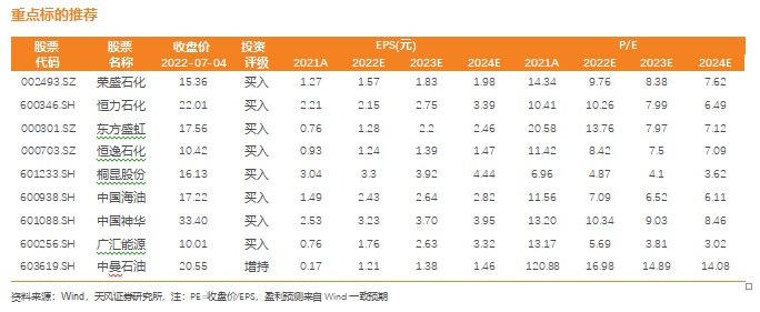 重点推荐:1.看好大炼化盈利修复,以及第二成长曲线开启,推荐荣盛石化、恒力石化、东方盛虹、恒逸石化、桐昆股份。2.上游公司继续受益能源品价格维持高位,看好中国海油、中国神华、广汇能源、中曼石油。