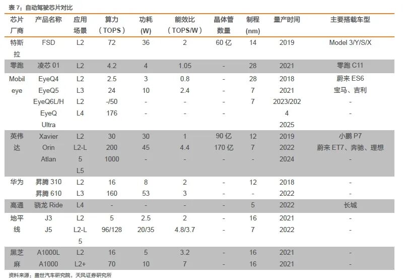 3. 主控芯片:算力随着智能化提升不断提升从L1的<1TOPS算力到L5 1000+TOPS算力推动主控芯片高速增长
