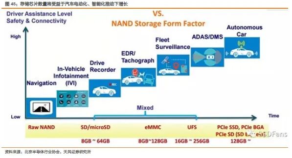 5.存储芯片:汽车存储系统随着智能化水平提升容量和性能将实现快速增长,汽车将成为存储器步入千亿美金市场的核心因素