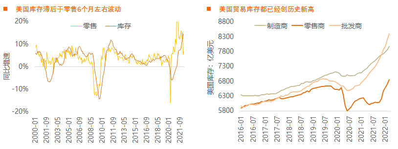 美国零售变化领先库存6个月左右,三季度有望继续补库存。