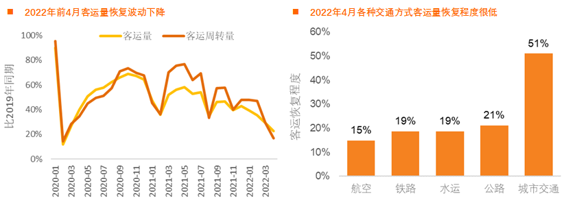 受疫情反复影响,2022年4月份客运量恢复程度接近疫情以来最低点