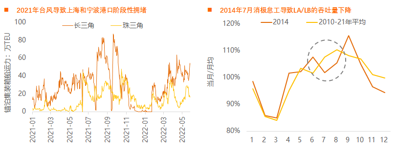 2021年夏季2次台风都导致上海港和宁波港暂停作业,港口阶段性拥堵。