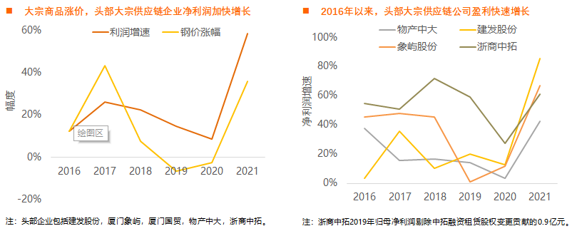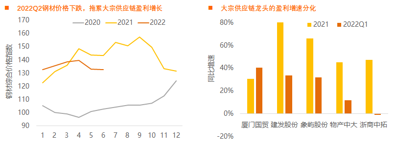 如果2022年商品价格同比下跌,那么大宗供应链头部公司盈利增速可能下滑。