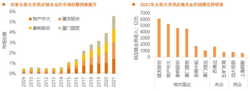 大宗供应链行业已经形成建发股份、厦门象屿、厦门国贸、物产中大等头部公司明显领先的竞争格局。