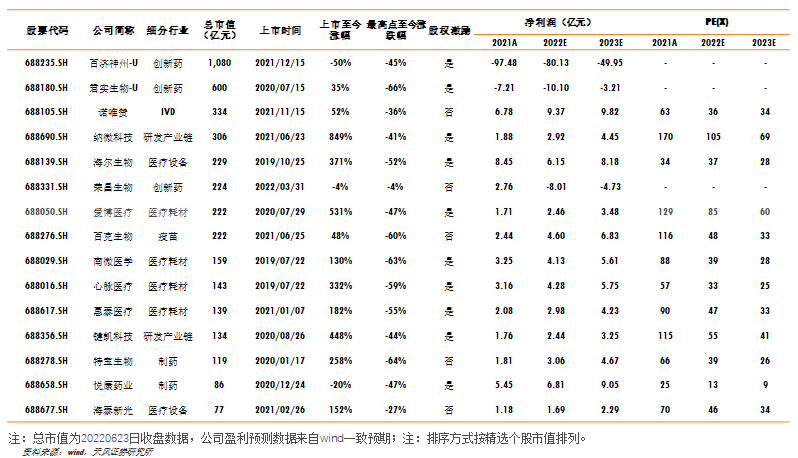 建议关注拥有合理可延续的研发管线并具有优秀商业化能力的创新药公司及相关产业链:百济神州、贝达药业、信达生物(H)、恒瑞医药、荣昌生物、康方生物(H)、君实生物、药明康德、康龙化成、金斯瑞生物科技(H)、皓元医药。
