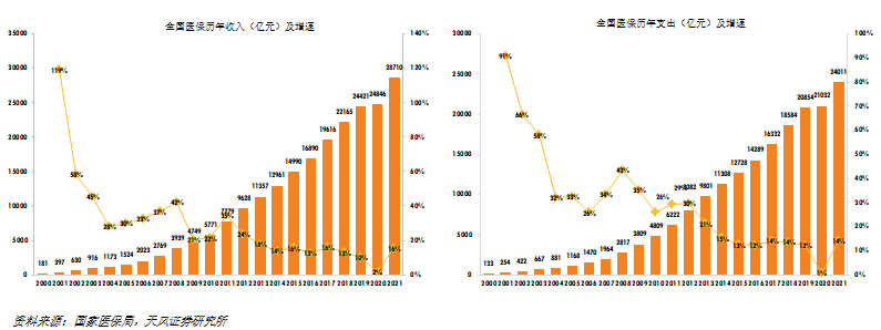 医保收支:2021年基本医保收入、支出分别为同比增长16%/14%