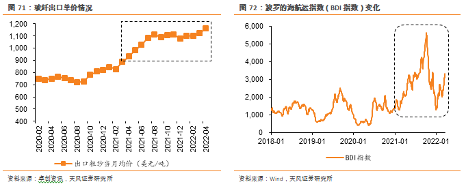 20年为5.4%),总体保持较陡峭渗透率提升节奏,且结合最新数据其提升节奏有较好延续性。玻纤复合材料作为汽车轻量化的重要基础材料,21年以来需求延续高景气(一个佐证案例为,因21年主要用于汽车领域的热塑短切纱需求旺盛,21年中国巨石在前期规划外于桐乡以较快速度投产1条年产15万吨热塑短切原丝池窑),我们认为新能源汽车需求高景气是重要驱动力。21年汽车销量相对疲弱部分源于汽车芯片供应紧缺,汽车整体销量或逐步回暖;同时在政策呵护、消费观念转变有延续性背景下,新能源汽车渗透率料进一步提升,后续汽车领域玻纤消费量或延续较快增长节奏。新形势下玻纤出口亦值得重视。20年以来,反映全球航运运费的BDI指数有两波明显上涨,影响因素包括疫情及海运周期等,海运资源紧张的局面下,玻纤纱及制品21年总体呈量价齐增局面,且有较好持续性,反映海外对于国内玻纤的强劲需求。我们认为海外强劲的需求主要源于:1)部分海外供给退出历史舞台(原因较为多元,包括海外天然气成本上涨更快削弱盈利能力及前景、部分企业基于发展战略考量聚焦技术附加值更高的制品及复合材料等),全球玻纤产能延续向国内转移;2)海外新能源汽车、风电等产业发展亦较快,支撑海外玻纤产品需求较好增长。尽管近年出口占我国玻纤产量比例总体呈下降趋势,20年到达历史低点约25%,21年观察到小幅回升。玻纤产品出口景气度对于我国玻纤行业整体景气度仍有较大影响,我们看好后续玻纤出口支撑。此外,海运价格现阶段仍偏紧,随着新增运力逐步释放及疫情影响边际趋弱等,海运资源紧张局面或逐步回归正常水平,部分被抑制的海外需求亦有释放潜力。3.1. 地产链:首推消费建材,关注玻璃、水泥反弹机会21年下半年以来地产产业链受政策层面及房企流动性危机影响,板块估值已回调至低位,地产端于21Q4出现政策底,2022年初多地密集出台因城施策政策,二季度央地政策协同发力,5月地产销售拐点出现,6月份数据延续好转,我们判断地产基本面底部或已出现。Q3开始将逐步实现由地产基本面向地产链相关建材基本面改善传导的过程,9月开始将迎来竣工低基数期,叠加保交付要求,我们判断下半年地产后端景气度或优于前端,首推消费建材(有望呈现EPS和PE双击)。另外当前周期品如水泥、玻璃均处在价格底部,我们认为需求边际+旺季因素有望带动周期品价格上扬,股价有望迎来反弹。1)消费建材:21年Q3以来消费建材在地产景气度下滑、资金链、成本压力等影响下,龙头市占率实现逆势提升,α充分体现;短期来看,地产基本面边际改善有望带动需求回暖,成本端随着原材料价格开始高位回落+公司年初继续提价,盈利能力有望回升,叠加去年低基数因素,下半年龙头企业业绩改善弹性较大,有望迎来戴维斯双击;中长期改造市场有望逐步放量,消费建材仍拥有稳定的行业需求前景,龙头市占率提升逻辑将持续兑现。推荐蒙娜丽莎、三棵树,东方雨虹、坚朗五金、亚士创能、科顺股份等。2)水泥:22Q1水泥产量同比下滑12%,但价格仍高于去年同期,体现出较好的供给协同性,5月行业价格竞争加剧引发市场悲观预期,但我们认为此次价格战本质原因是需求下滑幅度超预期引发的市场应对不足,并不意味着供给协同的破裂,在淡季之后新的竞合关系或将形成,Q3旺季价格仍可能会快速提涨。上半年水泥板块遭受需求下滑与煤价上涨双重压力,下半年均有望得到缓解(基建投资有望继续提速,同时地产边际好转,共同提振水泥需求且煤炭价格同比压力减弱),中长期看“双碳”+“双控”政策有望带动行业供给格局进一步优化,龙头企业一方面通过兼并收购巩固市场低位,增强话语权,另一方面通过骨料等业务打造第二增长极。从股息率及估值角度,水泥股具投资性价比,推荐华新水泥、海螺水泥。3)浮法玻璃:我们预计22年下半年地产竣工有望逐步改善,需求端仍有支撑,供给侧未来冷修的增加或使得浮法玻璃供需压力得到缓解,当前多数原片厂价格已低于成本线水平,若后续下游开工率上升,补库需求或带动玻璃价格上行,单箱盈利具有较大修复空间。浮法龙头股价已大幅调整,考虑均衡状态下其浮法业务的盈利与估值,以及新业务带来的额外成长性,我们认为当前浮法龙头已具备较好的中长期投资价值,推荐旗滨集团,南玻A。3.2. 工业建材:供给侧存在预期差,国产替代空间广阔非地产链的工业建材上半年需求端景气度相对较高(其中光伏玻璃主要受益于国内分布式装机高增+海外加码,药用玻璃受益于中硼硅渗透率提升和预灌封高景气,玻纤受益于出口需求超预期),我们预期下半年需求端有望保持较高景气度。预期差在于供给端,光伏玻璃Q2部分产线推迟点火,下半年供给端增量可能会继续低于预期,而玻纤上半年虽有较多产线点火,但考虑到国外产能退出以及国内冷修等,后续供给冲击动能将边际趋弱。中长期来看,工业建材的成长性相对更优,电子新材料、碳纤维等国产替代的空间仍然较大。1)光伏玻璃:需求端受分布式装机支撑,上半年国内新增装机量保持高速增长,同时海外政策加码,欧洲需求超预期,下半年随着硅料产能释放带来的组件端价格的改善,国内集中式装机需求有望接力,而供给端Q2部分产线推迟点火,下半年供给端增量可能会继续低于预期,现阶段价格受行业成本中枢支撑较强,已出现底部回暖趋势。