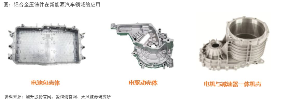 一体化压铸的应用有助于轻量化的实现,特斯拉 Model Y后地板总成采用一体压铸后重量降低了30%。随着一体化压铸技术的发展,铝合金压铸在车身与底盘结构件以及电池壳体上的应用有望逐步提升,从而提升铝合金压铸的单车价值量。