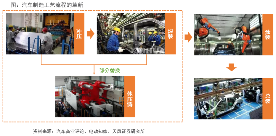 1.3 一体化压铸:革新传统汽车制造工艺流程