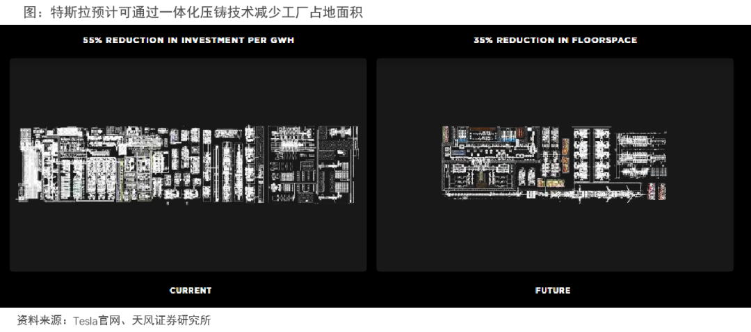 降低土地成本:一台大型压铸机占地面积仅100平方米,特斯拉采用大型压铸机后,工厂占地面积减少了30%。