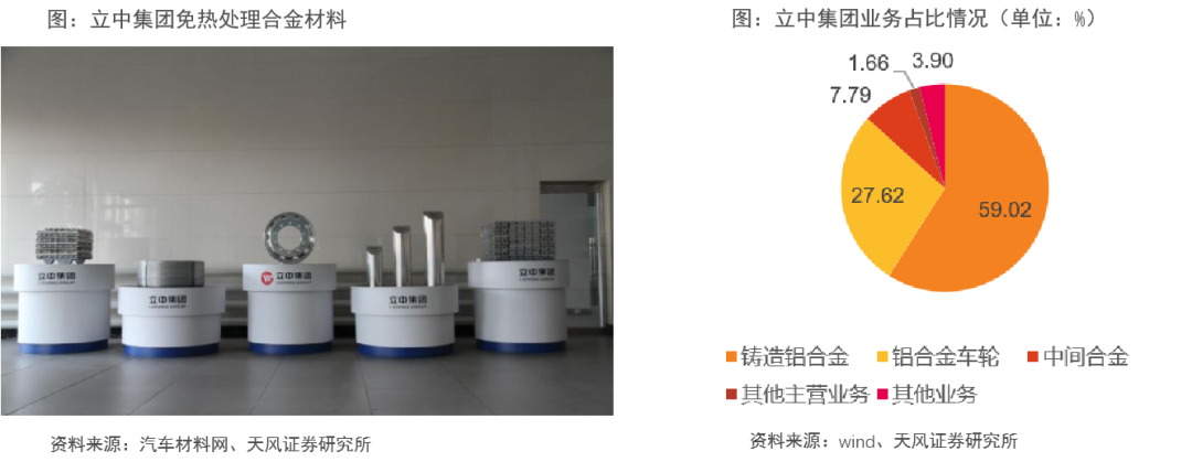 立中集团始创于1984年,专业从事研发、生产铸造铝合金、变形铝合金、铝合金车轮、功能合金新材料、精密模具、自动熔炼装备和锂钠电池新材料等,产品主要应用于汽车、高铁、电子电器、消费电子、5G通讯、航天航空、机械、船舶、新能源动力电池等领域。据2021年年报显示,公司铸造铝合金业务占比59.02%,为公司第一大业务板块。
