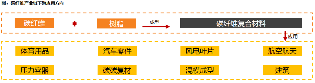 碳纤维应用:碳纤维结合树脂材料通过改变浸渍法、温度、步骤等程序控制碳纤维性能可以得到受力结构用碳纤维、耐焰碳纤维、活性碳纤维(吸附活性)、导电用碳纤维、润滑用碳纤维、耐磨用碳纤维,辅以成型工艺得到相应的碳纤维复合材料应用于航空航天、风电叶片、汽车用品等下游行业。目前国内的主要碳纤维产品以通用碳纤维为主,受限于国内技术工艺仍处于碳纤维初期,市场渗透率还有待提升,短期没有看到根据下游需求做定制化趋势,但碳纤维长期有望根据应用场景获取差异化优势。