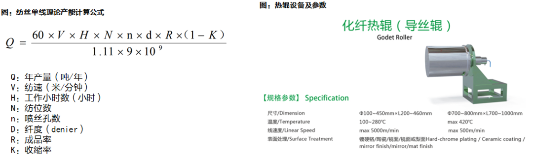 热辊牵伸——提升纺速:传统纺丝线的牵伸和烘干流程中均采用蒸汽加热,由于蒸汽传导热能效率较低,因此牵伸的线速度较慢,大致为80~240 m/min。而热辊牵伸采用电磁感应直接加热导丝辊,在同等辊径条件下热效率增加,能有效提升基础纺速。即使大尺寸的导丝辊,预计线速度也在500m/min以上,纺速提升将有效增加单线产能。