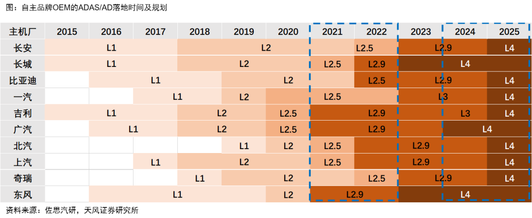 L2+车型开始推出,多家主机厂2024/2025落地L4