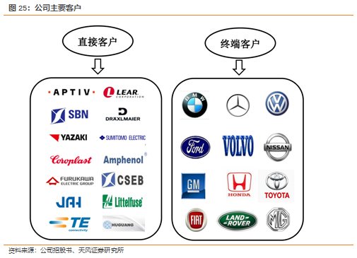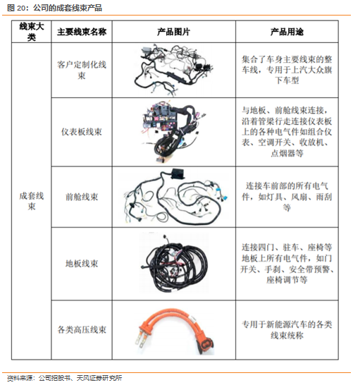 提前布局,发力新能源汽车市场,依托公司在新能源汽车高压线束的提前布局,公司在新能源汽车业务领域逐步取得优势。公司已向上汽通用 K228 项目、上汽集团 EP22 项目批量提供新能源汽车高压线束,同时,公司已获得上汽大众MEB 平台(专为电动汽车打造的生产平台)3 款纯电动汽车高压线束定点、北京奔驰在中国高压线束平台MFA 定点供应商、车和家理想 ONE 新能源汽车高压线束定点,相应高压线束项目处于同步研发中。智能制造水平在汽车线束领域中处于相对领先地位,汽车线束行业属于汽车零部件行业的细分领域,是典型的劳动密集型产业,但目前大多汽车线束厂商仍然停留在依靠局部的先进设备来完成部分加工环节的自动化生产阶段,智能制造尚未普及发展。公司自 2008 年起便前瞻性地将信息化及自动化技术应用于产品设计及生产制造,致力于以机器换人,现已成为车线束领域中为数不多的可以实现贯穿设计、生产、仓储、物流、管理及服务等全流程的智能化制造的企业,公司独特的智能制造模式在汽车线束领域处于相对领先地位,积累了良好的客户口碑及品牌影响力。5.3. 卡倍亿:国际汽车线缆标准制定参与者,产品覆盖多家国内主流厂商公司主营业务为汽车线缆的研发、生产和销售。公司作为汽车供应链中的二级供应商,在取得汽车整车厂商的产品认证后,为一级供应商——汽车线束厂商提供汽车线缆配套服务。公司主要产品为常规线缆、铝线缆、对绞线缆、屏蔽线缆、新能源线缆、多芯护套线缆等多种汽车线缆产品。根据汽车整车厂商的设计要求,公司生产的产品须符合国际标准、德国标准、日本标准、美国标准、中国标准等专业汽车线缆标准,并须满足部分客户的特殊技术要求。公司2021年前三年季度的营业收入为15.78亿,同比增长105.25%,仅前三季度营业收入已超过去年全年营收,业绩成长可观,汽车的电动化和智能化趋势对公司业绩的拉动已经初见成效。公司已向众多海内外优质客户供货。公司先后通过了IATF16949质量管理体系认证、ISO14001环境管理体系认证。公司推选了两名高级管理人员成为ISO/TC22/SC32/WG4(ISO国际标准化组织道路车辆技术委员会——电子电气元件和一般系统分委员会——汽车电线工作组)成员,参与起草、修订、管理国际汽车线缆标准。目前,公司已先后取得了大众、通用、福特、宝马、戴姆勒-奔驰、本田、丰田、日产、菲亚特-克莱斯勒、沃尔沃、路虎、上汽集团、广汽集团、吉利控股等国际主流汽车整车制造商的产品认证,为安波福、住电、矢崎、李尔、古河、德科斯米尔、金亭等国际知名汽车线束厂商提供长期稳定的配套服务。公司在线缆的制造工艺具有深厚积累,铝线缆性能已达国际水准。公司自成立以来一直专注于汽车线缆行业,积累了丰富的汽车线缆研发、制造经验,形成了自己的技术和配方优势。为了确保产品设计的可靠性和安全性,使产品性能更完善,公司设有独立实验室,配置完善的实验室设备,具有自主进行线缆及相关原材料各项性能测试的能力;在生产工艺方面,公司采用国内先进成熟的制造技术,采用多头拉丝机、快速换色挤出机、工业自动化控制设备等先进生产设备;在绝缘材料方面,公司通过多年的研发和实验,不断完善绝缘材料配方,根据汽车线缆使用的部分及对应的性能需求,使绝缘材料符合抗震动、适应摩擦、臭氧、油污、高热、寒冷和电磁辐射等各种情况条件下的汽车线缆需求。公司通过多年的研发,掌握了铝线缆产业化的关键工艺和性能。公司研制的铝线缆,攻克了铝线缆不易焊接等问题,并投入产业化应用,焊接以后稳定性好,达到国际水平。目前公司已就铝线缆与多家知名汽车线束企业展开业务合作。上市募投资金用于扩充产能,把握电动化、智能化汽车市场机遇。公司2020年上市募投资金主要用于新能源汽车线缆及智能网联汽车线缆产业化项目和本溪卡倍亿汽车铝线缆建设项目。新能源汽车线缆及智能网联汽车线缆产业化项目总投资额3.47亿,该项目将在上海新建专业的新能源汽车线缆及智能网联汽车线缆的生产线,结合上海的地域优势、汽车行业政策优势,建立产、研相结合的生产基地。本项目实施后,卡倍亿将在新能源汽车和智能网联汽车方面进一步提高市场响应速度,提升公司产品的质量和供货能力。5.4. 金信诺:同轴电缆重要参与者,技术水准居于国内领先水平公司是国内射频同轴电缆品种最全、半柔射频同轴系列产品规模最大、具有较强品牌影响力的中高端射频同轴电缆生产企业之一。公司主要从事中高端射频同轴电缆的研发、生产和销售,主导产品包括半柔电缆、低损电缆、稳相电缆、军标系列电缆、半刚电缆、轧纹电缆等,广泛应用于移动通信、微波通信、广播电视、隧道通信、通信终端、军用电子、航空航天等领域。公司自创立之初一直致力于科技创新,通过持续研发创新和市场拓展,已形成完整的自主知识产权体系。公司今年前三季度业绩已逆转去年颓势,营业收入为19.23亿元,同比增长31.51%,归母净利润为 0.36亿 ,同比增长21.26%。公司在线缆产品上实现了通信全系列产品覆盖,并持续拓展市场份额,为核心设备商、天线厂商客户提供定制化服务。并进一步针对新能源汽车领域,实现汽车高压EV线和汽车数据线缆全覆盖。以及面向工业自动化控制线缆、医疗